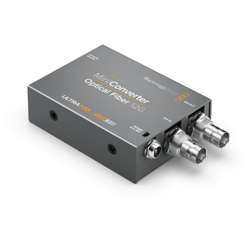 El Mini Converter Optical Fiber 12G-SDI de Blackmagic Design ofrece funciones de conversión SDI a fibra óptica bidireccional y multivelocidad con total independencia en cada dirección y compatibilidad con señales hasta DCI 4K25 y UHD 4K60. Este conversor cuenta con una toma de fibra óptica SFP (requiere un módulo independiente), una entrada 12G/HD/SD-SDI y una salida 12G/HD/SD-SDI. Gracias a su velocidad de 10 bits, podrá aprovechar los largos tramos de fibra óptica y la compatibilidad con equipos HD-SDI y SD, tanto de estudio como de campo. Entre