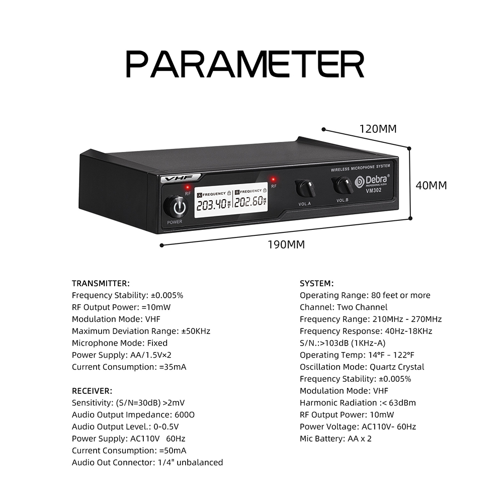 El micrófono inalámbrico VM302 es un sistema de karaoke que utiliza transmisión de señal VHF. Se centra en la portabilidad y la rentabilidad. Es excelente para el hogar y el uso diario. Utiliza tecnología de chip PHD para el procesamiento de sonido, lo que mejora la claridad del micrófono. Gracias a su diseño de circuitos razonable, se garantiza la estabilidad de la transmisión de la señal. El VM302 es una excelente opción para el hogar, banquetes, karaoke, conferencias y grabaciones de canto.