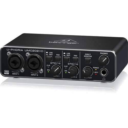 Disfrute de una monitorización de baja latencia y una práctica grabación en casa con la UMC202HD de Behringer , una interfaz de audio USB 2x2 que ofrece un muestreo de hasta 192 kHz a 24 bits. Con dos entradas combo XLR-1/4" y preamplificadores Midas de alta calidad, podrá capturar sonido detallado de diversas fuentes de audio, como micrófonos, señales de línea e instrumentos de alta