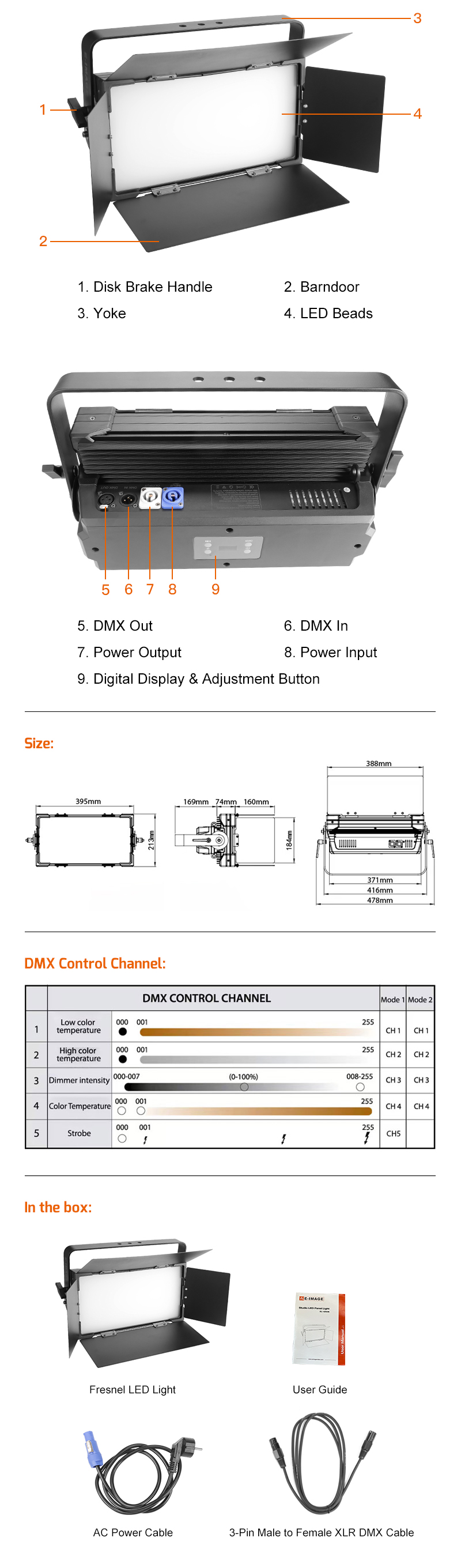 La intensidad de la luz es variable de 0 a 100% para adaptarse al nivel ambiental o servir como una luz clave ajustable. Puede cambiar el brillo y la temperatura del color rápidamente usando la perilla de ajuste.