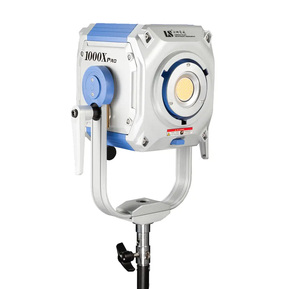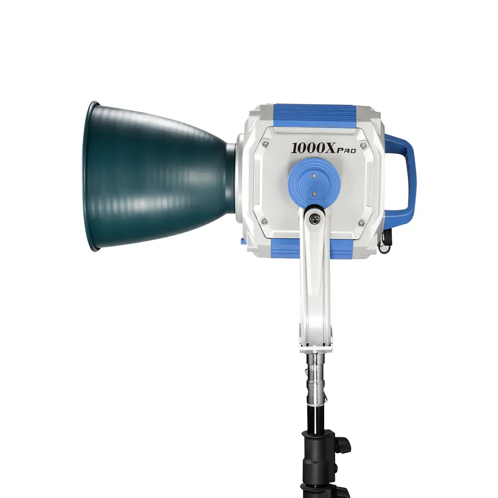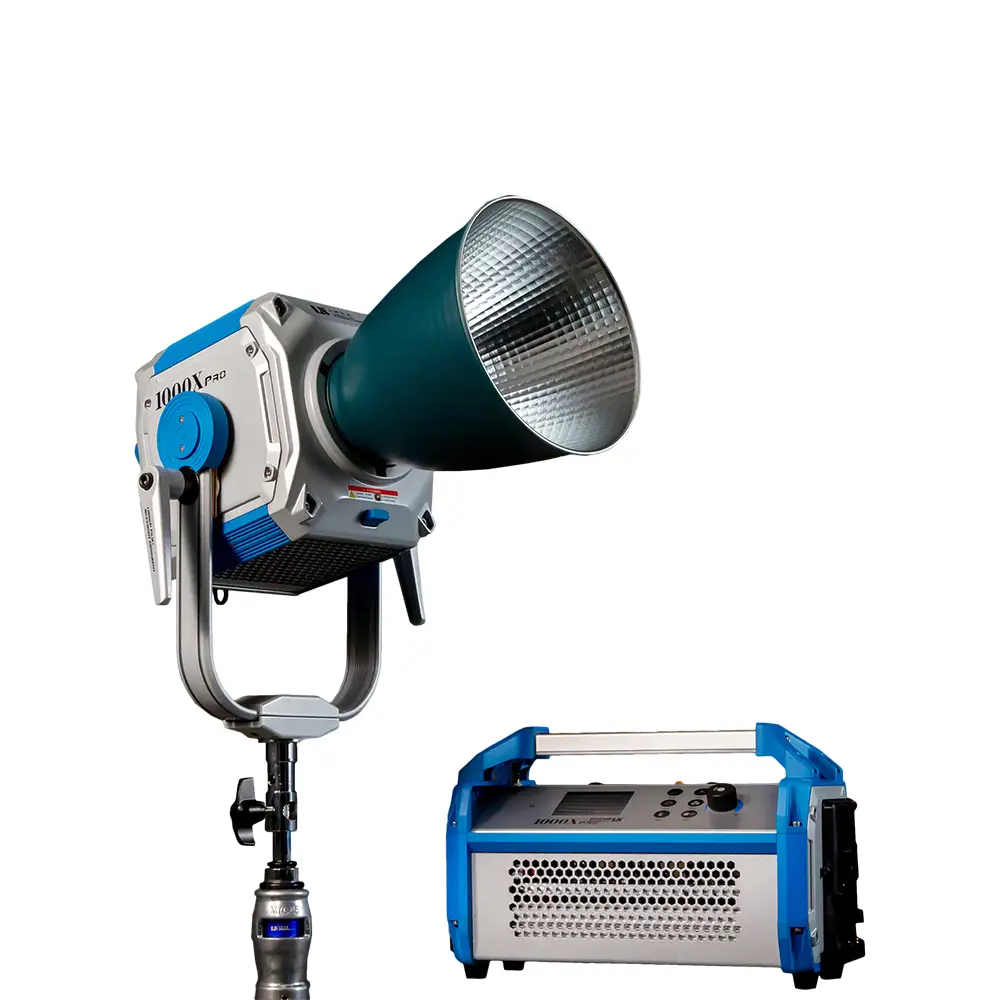 El 1000X es un LED COB de alta potencia con una vida útil de hasta 50,000 horas y se puede atenuar de 0 a 100%. Está construido con una carcasa de aluminio y 11 modos de efectos especiales preinstalados para proporcionar una mayor libertad creativa al diseñar configuraciones de iluminación. También hay una caja de control, consolas DMX, control remoto y una aplicación de teléfono móvil disponibles para controlar la situación.