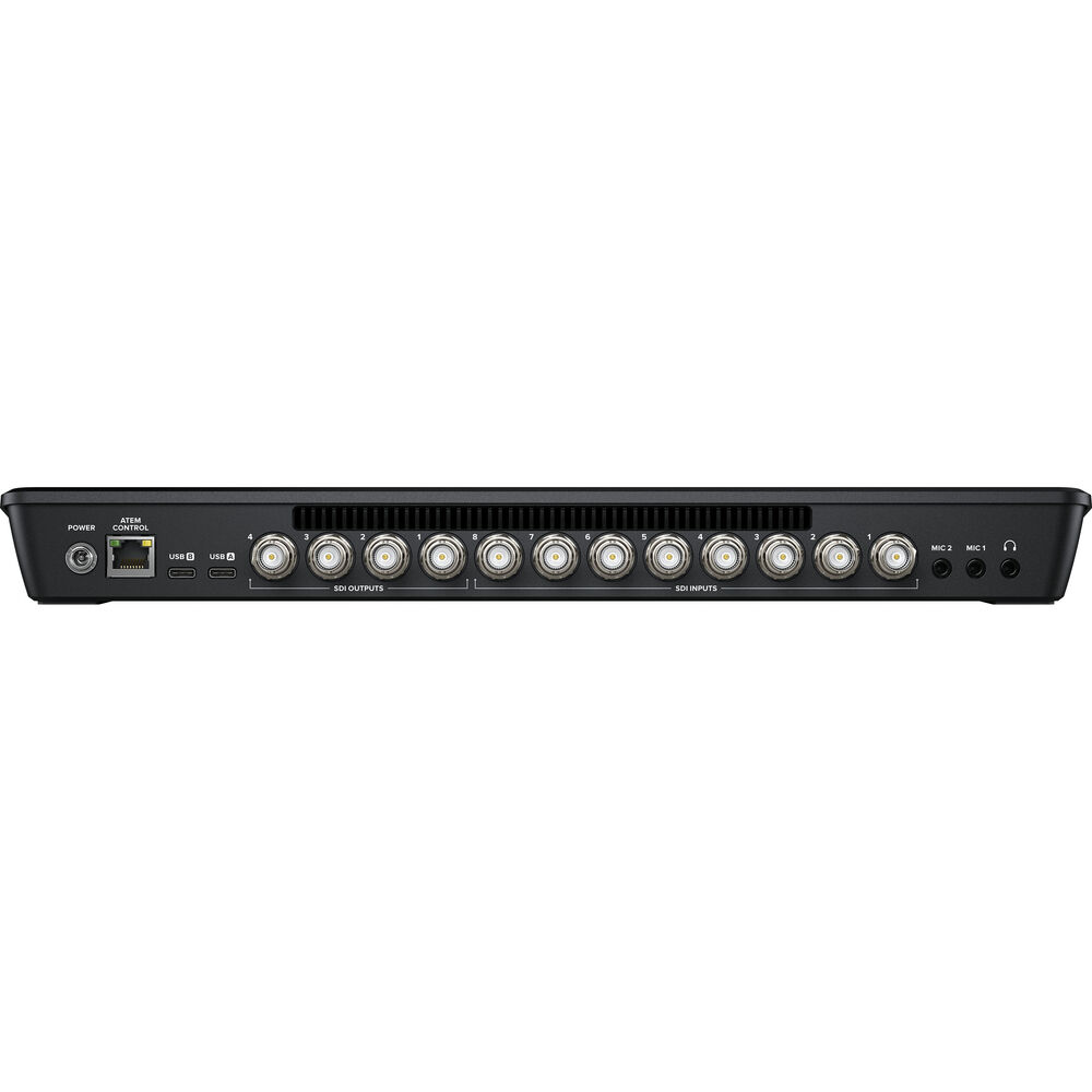El mezclador ATEM SDI Extreme ISO de Blackmagic Design es un mezclador de producción en vivo de 8 entradas para transmisión en vivo. Incorpora un panel de control integrado y funciones avanzadas de transmisión. Además de la transmisión en vivo mediante protocolos RTMP, también permite emitir el programa como si fuera una cámara web a través de USB. La etiqueta ISO del mezclador permite grabar individualmente cada uno de los ocho videos de entrada como MP4, así como la salida del programa a través de uno de los puertos USB Tipo-C. El mezclador genera automáticamente un archivo de proyecto de DaVinci Resolve, lo que permite limpiarlo y realizar cambios posteriormente. Las ocho entradas 3G-SDI independientes de este versátil mezclador admiten todas las señales HD más comunes hasta 1080p60. Cada entrada cuenta con convertidores de formato y frecuencia de imagen independientes, y admite la resincronización para una conmutación fluida entre diversas cámaras profesionales y de consumo, consolas de videojuegos y señales de computadora.